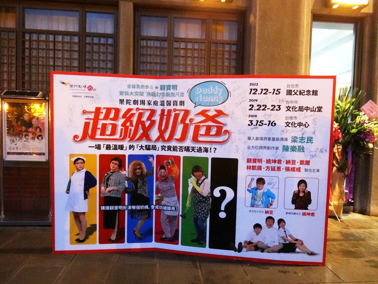 回到果陀的超級奶爸(Daddy Nanny),此劇由 梁志民 導演,陳樂融 編劇, 金鐘喜劇泰斗顧寶明,挑戰 37 年飆戲尺度 ! 劇場百變天后 姚坤君 、 全方位小天王 納豆 及舞台劇演員 凱爾、林凱薇、方延恩、張彧彧 聯合主演。